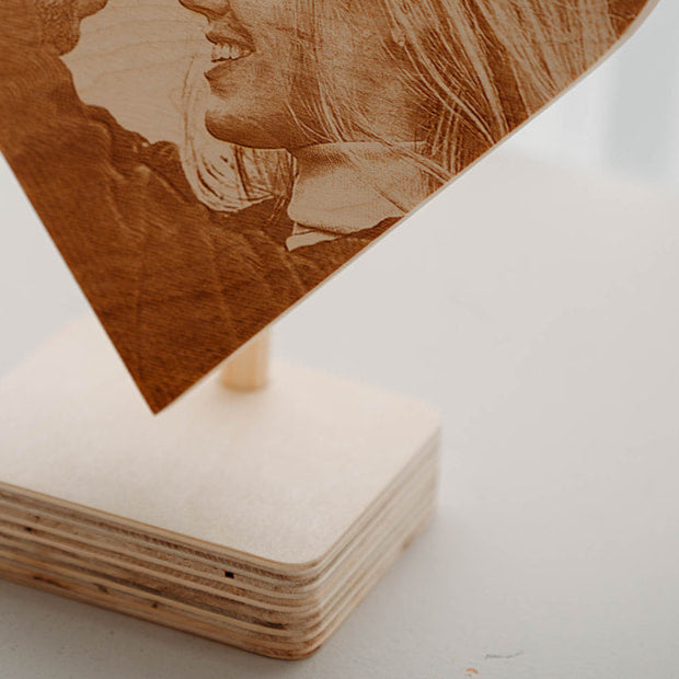 Alle varianten van de Shape Deluxe worden geleverd met een robuuste voet om je foto gebrand op hout neer te zetten.